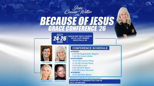 Join us at Grace & Truth Church in Sioux Falls, SD July 24-26, 2026 for a men and women's Because of Jesus Conference. Saturday & Sunday Lunch will be provided. Registration is free, but required due to limited seating.